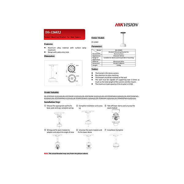 DS-1268ZJ PENDENT MOUNT