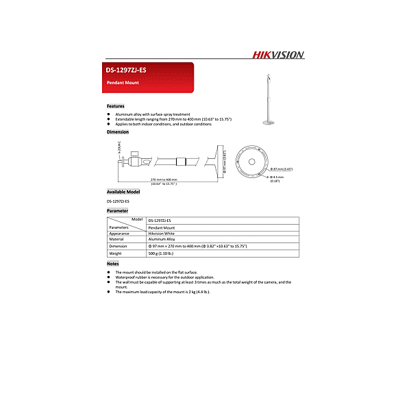 DS-1297ZJ-ES SUPPORT PLAFOND