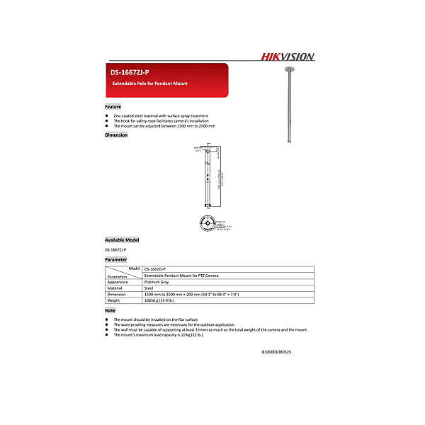 DS-1667ZJ-P PENDENT MOUNT