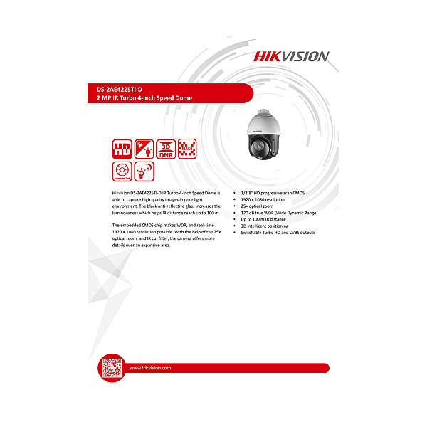 DS-2AE4225TI-D-E WITH BRACKETS CAMERA TURBO PTZ 360 2MP 25X