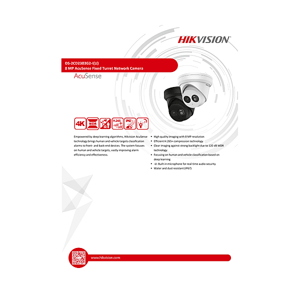 DS-2CD2383G2-IU-2.8MM-BLACK CAMERAIP TURRET,ACUSENSE,8MP