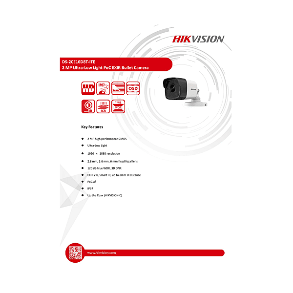 DS-2CE16D8T-ITE-2.8MM 2MP25 FIX WDRIR30M POC IP67