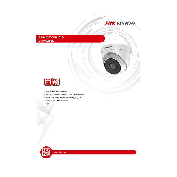 DS-2CE56D0T-IT3F-2.8MM-C 2MP25 FIXIR40M 4IN1 IP67