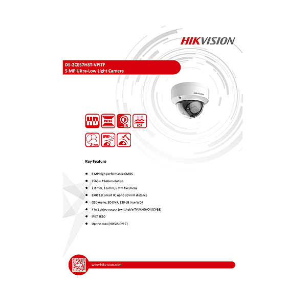 DS-2CE57H8T-VPITF-2.8MM CAMERA DOMETURBO 5MP