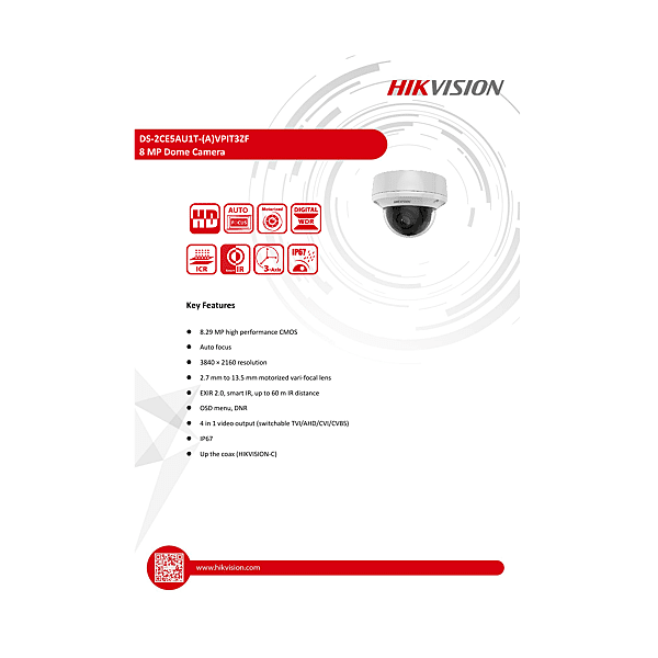 DS-2CE5AU1T-VPIT3ZF-2.7-13.5MM CAMERA DOME TURBO 8MP