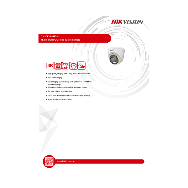 DS-2CE72UF3T-E-2.8MM CAMERA TURRETTURBO 8MPCOLORVU