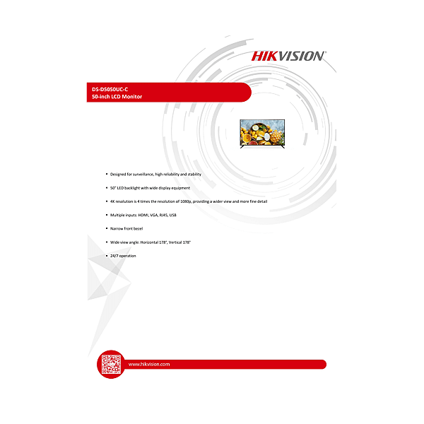 DS-D5050UC-C MONITEUR 50 4K, BORD FIN