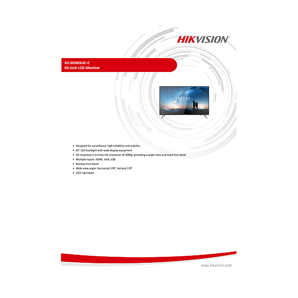 DS-D5065UC-C MONITEUR 65 4K, BORD FIN